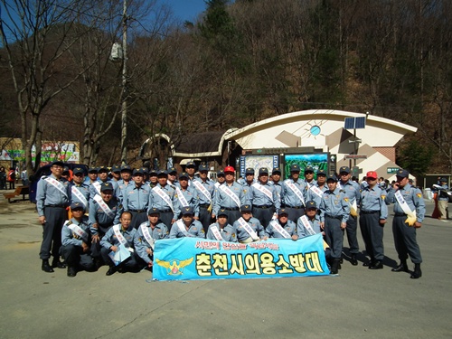 2011년 4월3일 춘천시 남산면 구곡폭포에서 춘천의용소방대(대장 이 돈균)외 대원50여명 춘천소방서장외50여명 이,