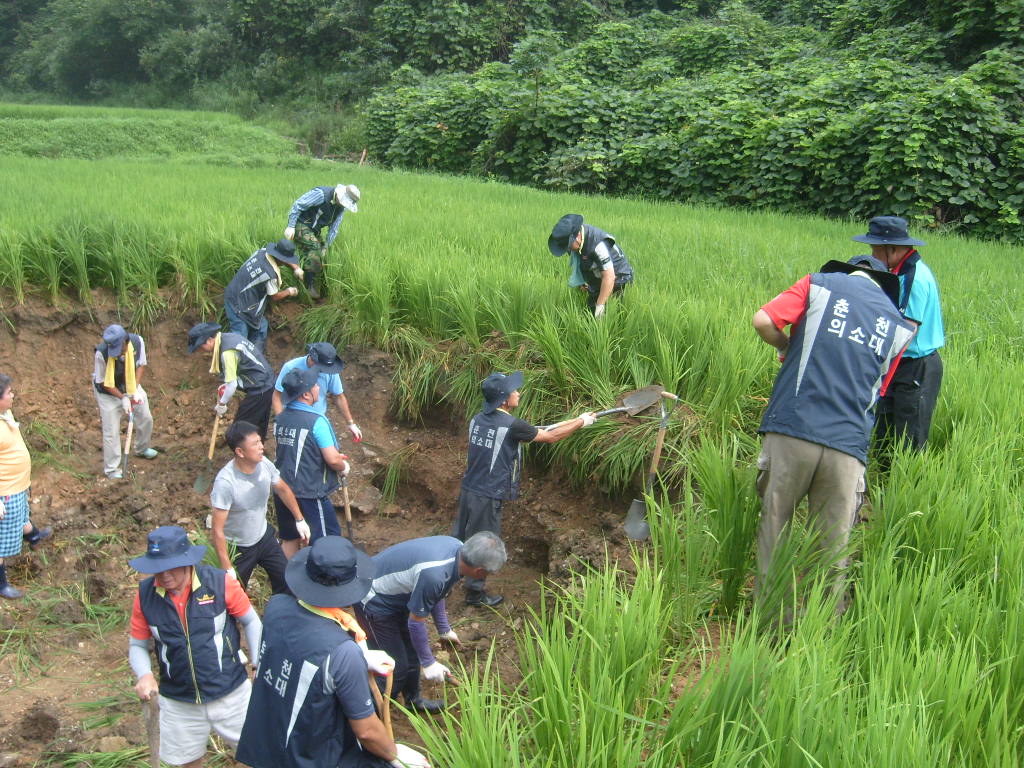8월14일 춘천의용소방대(대장 이돈균)에서는 대원 30여명이 자매결연 마을인 북산면 부귀리 물안마을 을 방문해 수해복구활동을 하였습니다.
