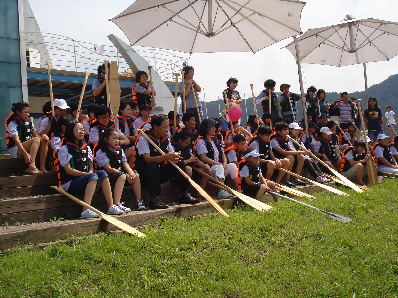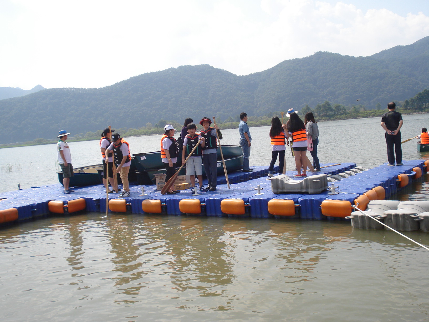 가족들과 함께 카누를 타며 봉사활동을 진행하였습니다.