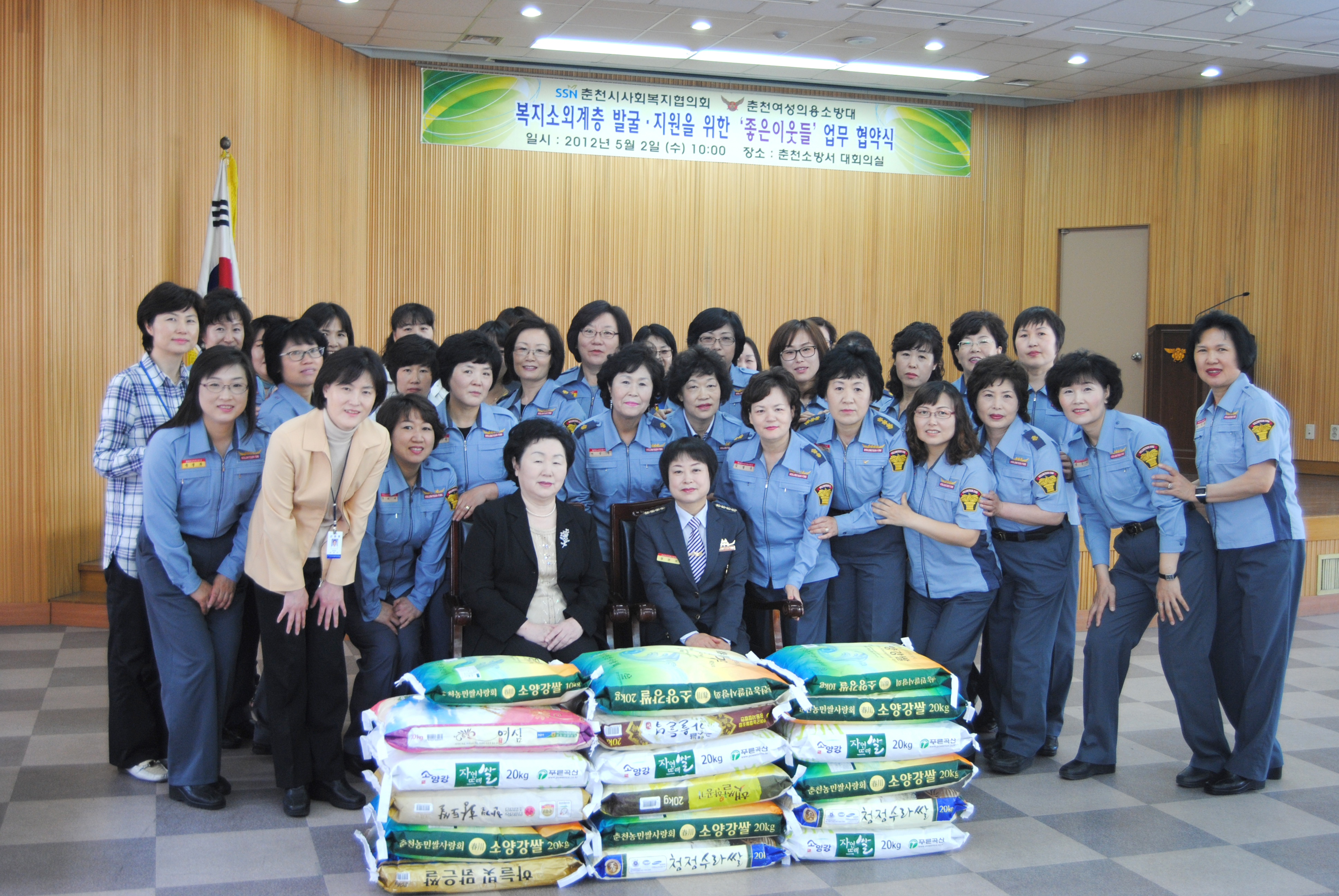 취임식때 받으셨던 쌀을 복지소외계층 발불.지원 "좋은이웃들"과 협약식을 맺고 모두 기증했습니다