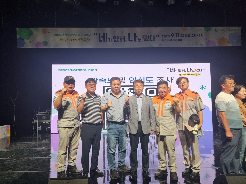 춘천남성의용소방대는 2025년 9월 11일(목) 춘천 KBS에서 개최된 2025년 자살예방의날 기념식 에서 다수의 자살예방 캠페인 공로를 인정받아 단체표창을 수상하였습니다.