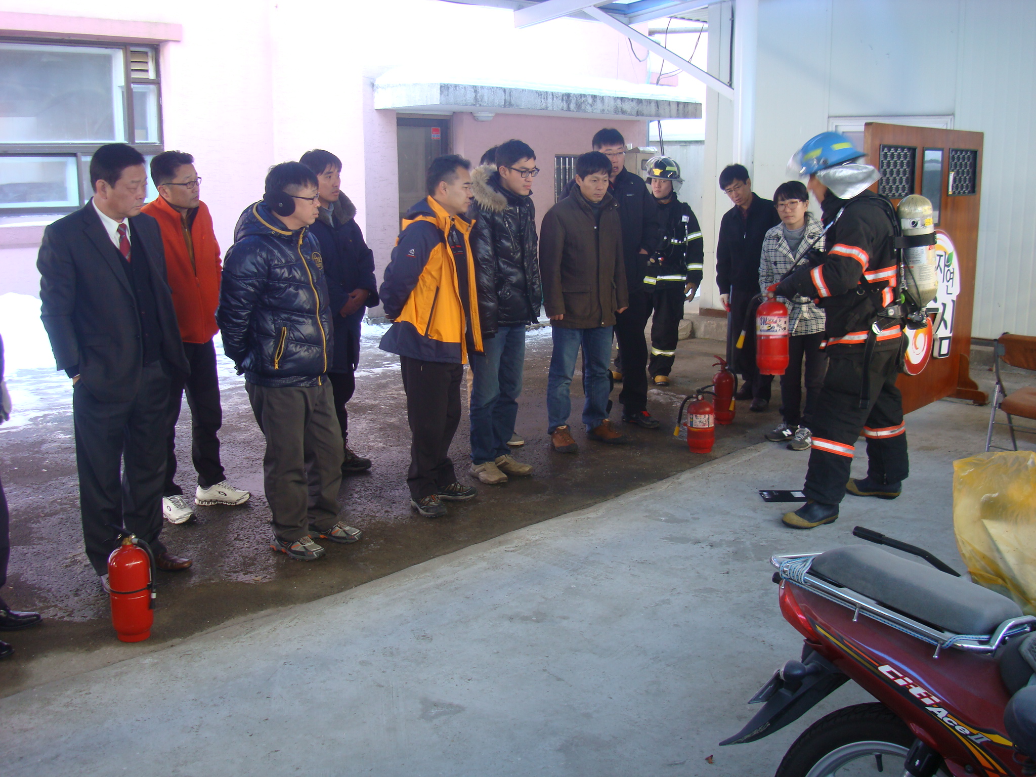추운 겨울 날씨에 쉽게 발생 할 수 있는 화재 발생시 초기진압의 중요성과 피난방법 및 대응방법 그리고 소화기 사용법에 대한 교육을 실시하였습니다.