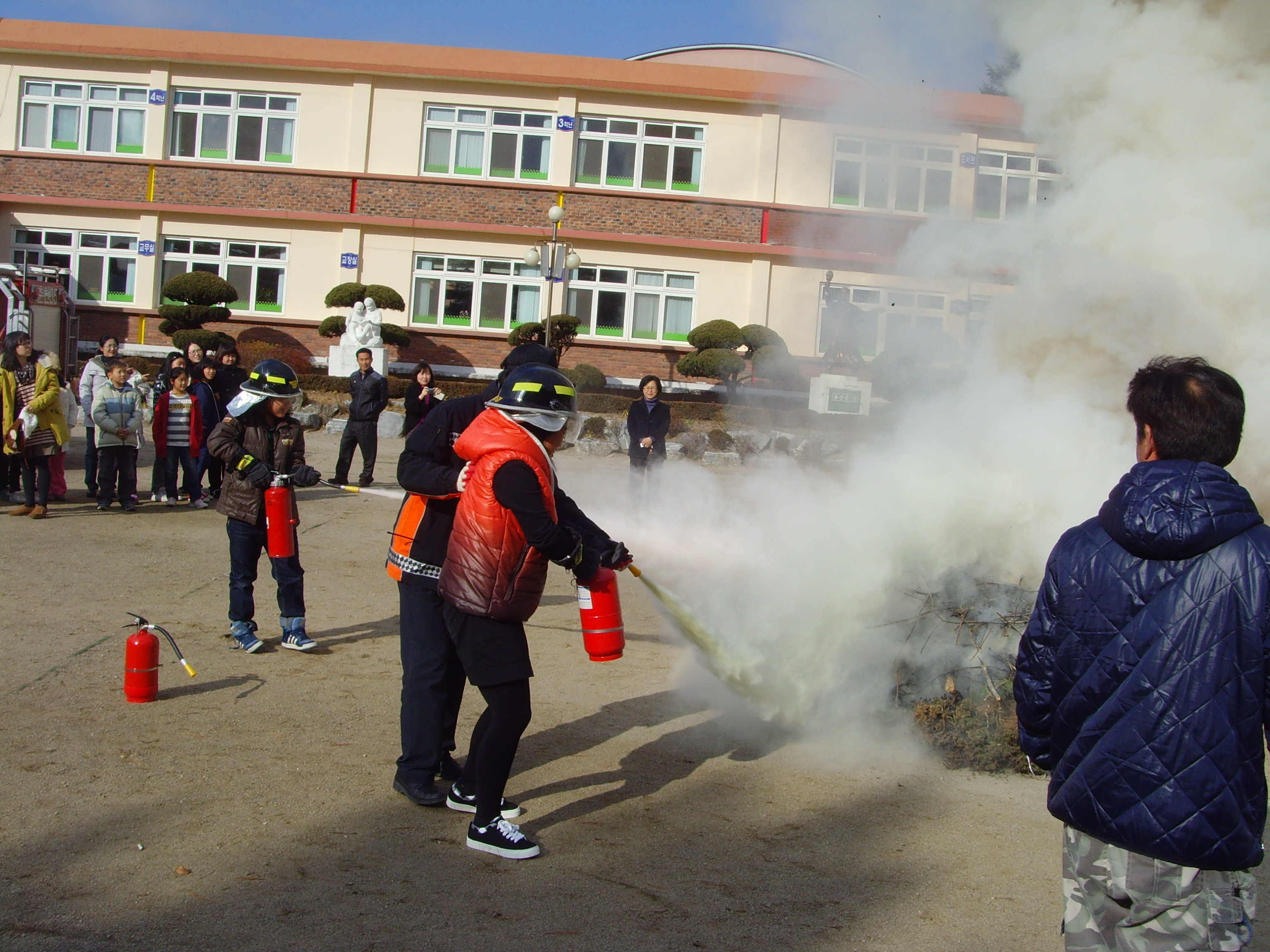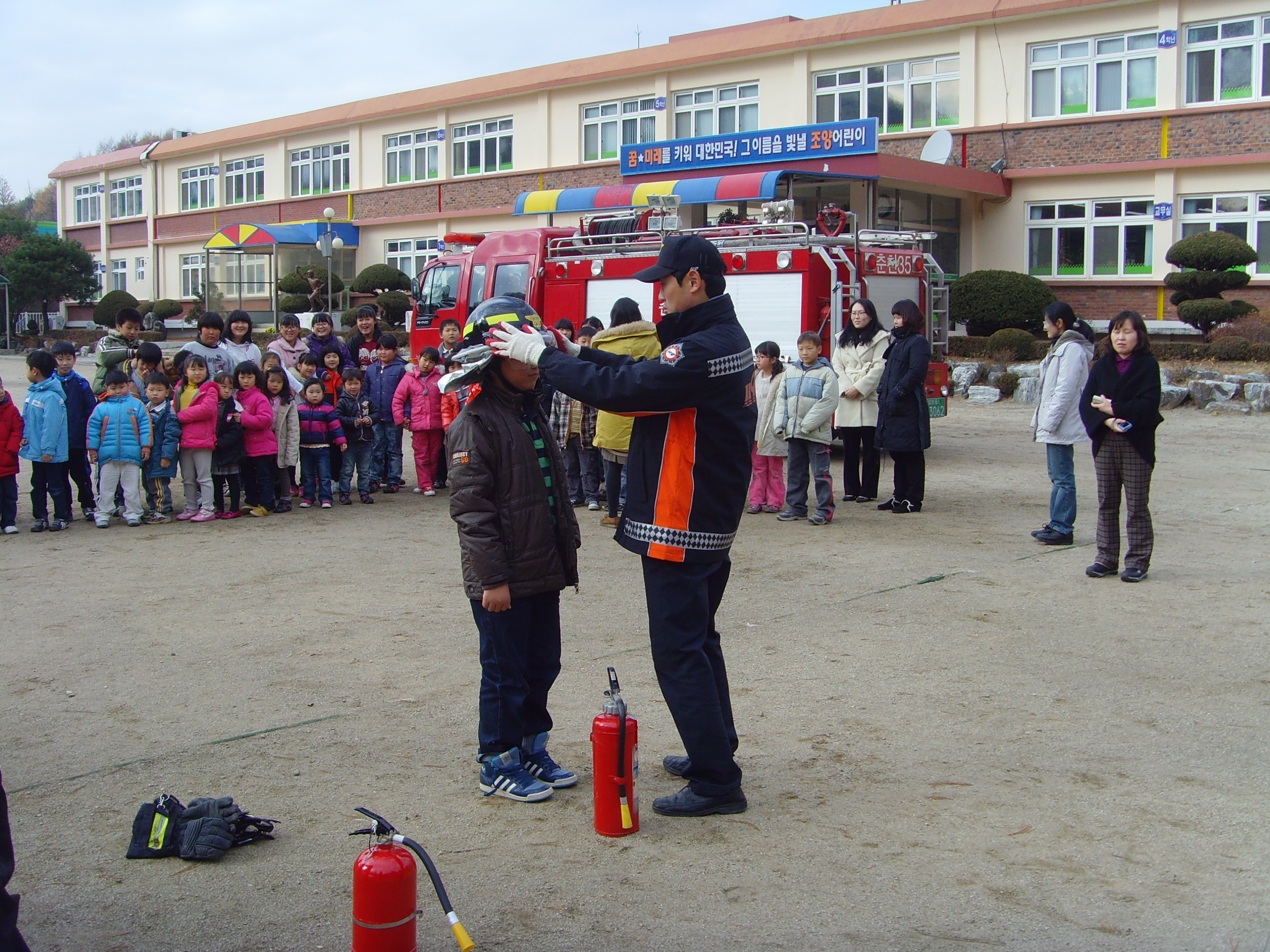 석사119안전센터(센터장 소방위 반종범) 동산지역대에서 금일 조양초등학교를 대상으로 공공기관 합동소방훈련을 실시 하였습니다. 조양초교 전교생과 교직원 모두가 참여하였으며, 훈련내용으로는 화재발생시 긴급대피요령과 소화기 사용법 등 기타안전관리사항에 대하여 교육하였습니다. 쌀쌀한 날씨 속에서도 적극적으로 훈련에 임하여 뜻깊은 시간이 되었습니다.