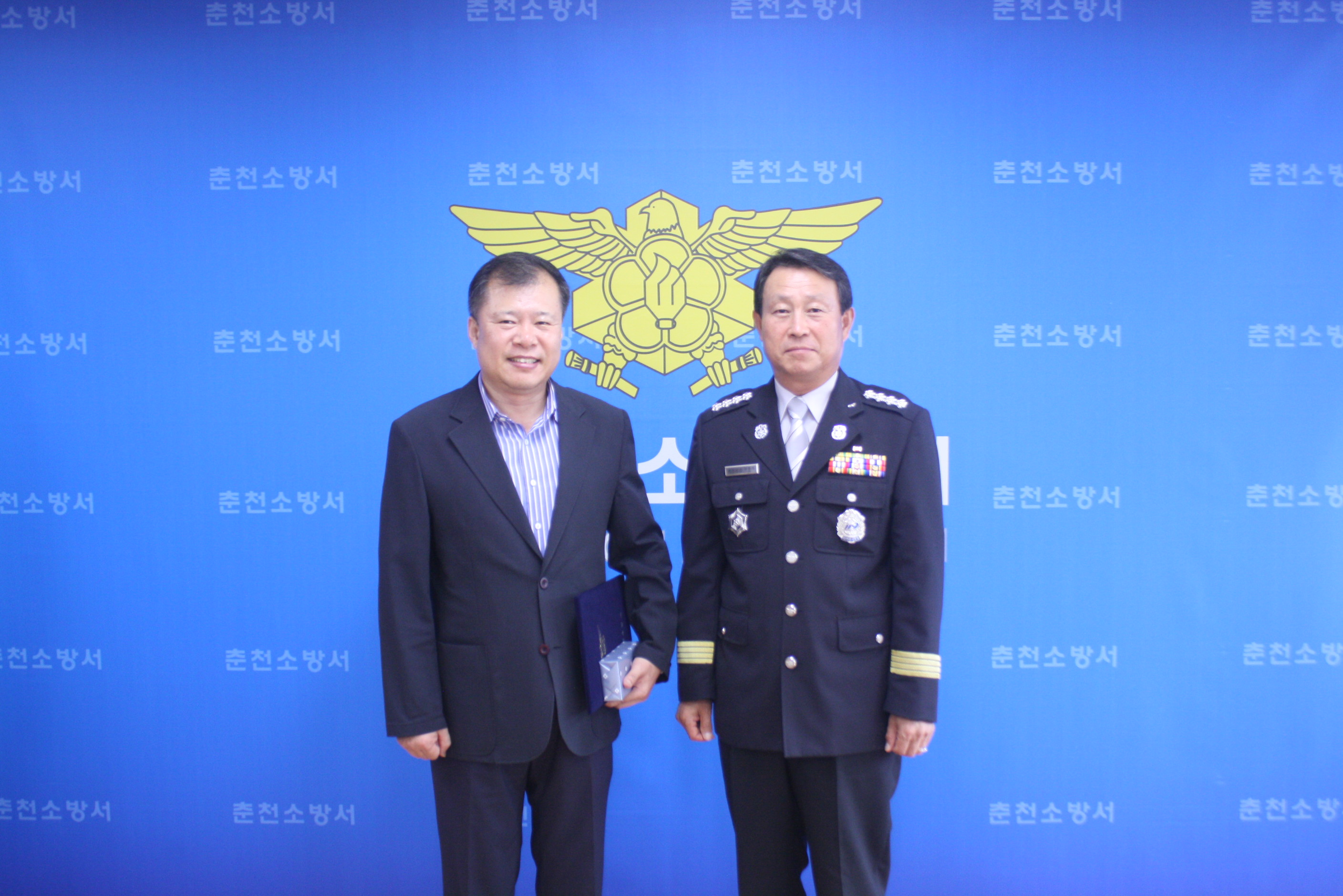 춘천소방서(서장 안중석)는 9일 본서 서장실에서 응급 상황에 처한 시민을 심폐소생술로 소중한 생명을 소생시킨 춘천우체국 이흥주 우편물류과장에게 표장을 수여했다.