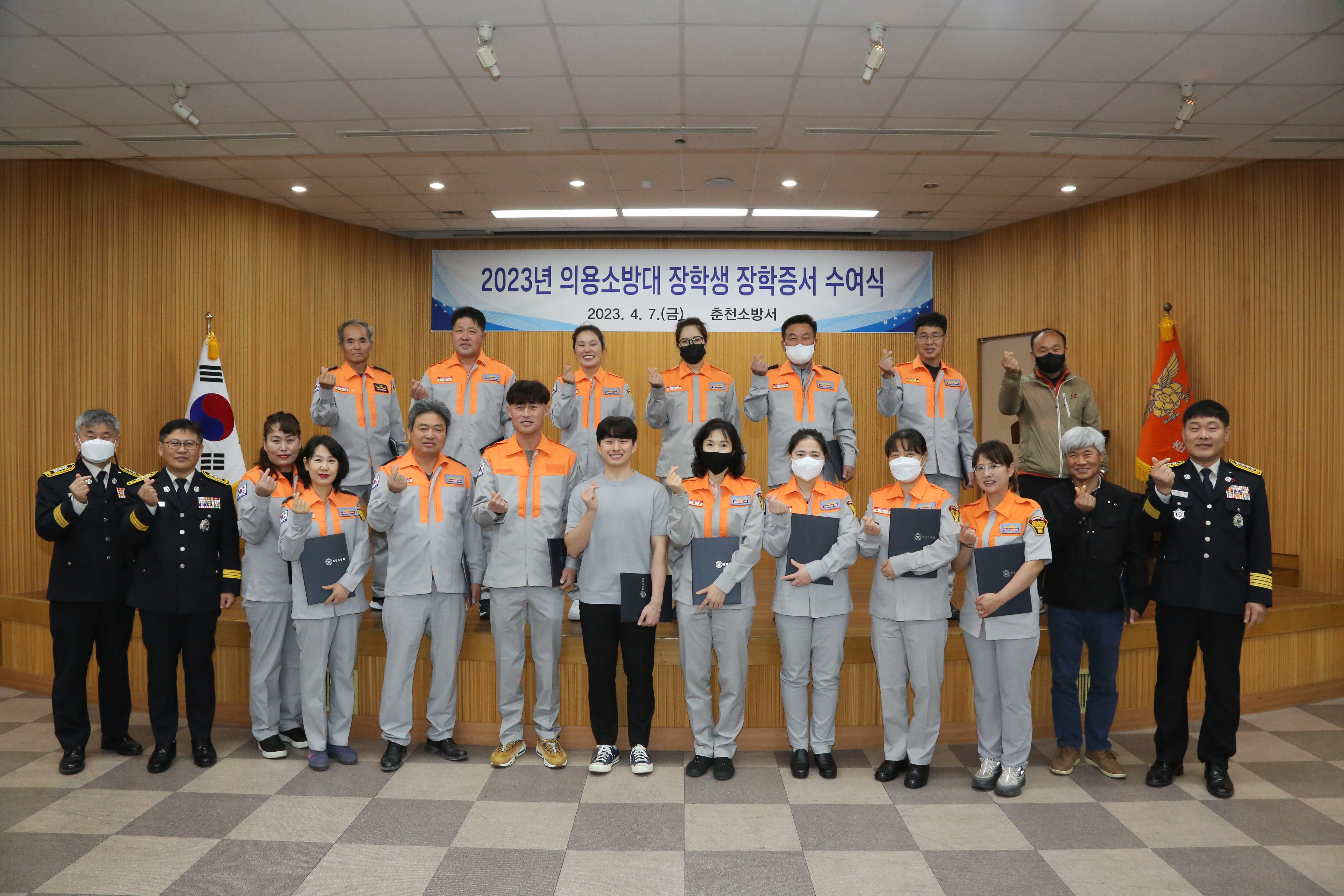 춘천소방서(서장 주진복)는 7일 소방서 대회의실에서 지역 안전을 위해 헌신한 의용소방대원 자녀에 대한 장학증서 수여식을 실시했다고 밝혔다.