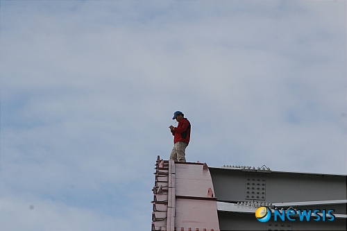 이날 경찰과 소방당국은 A씨가 추락할 것에 대비해 에어 매트리스를 설치하고 수상구조대를 배치 시켰다.
