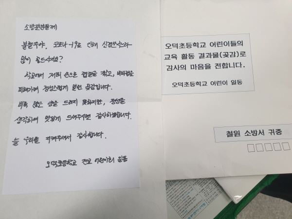 철원소방서(서장 남흥우)는 지난 26일 철원군 동송읍 소재 오덕초등학교에서 격려물품과 편지를 전달했다고 밝혔다.