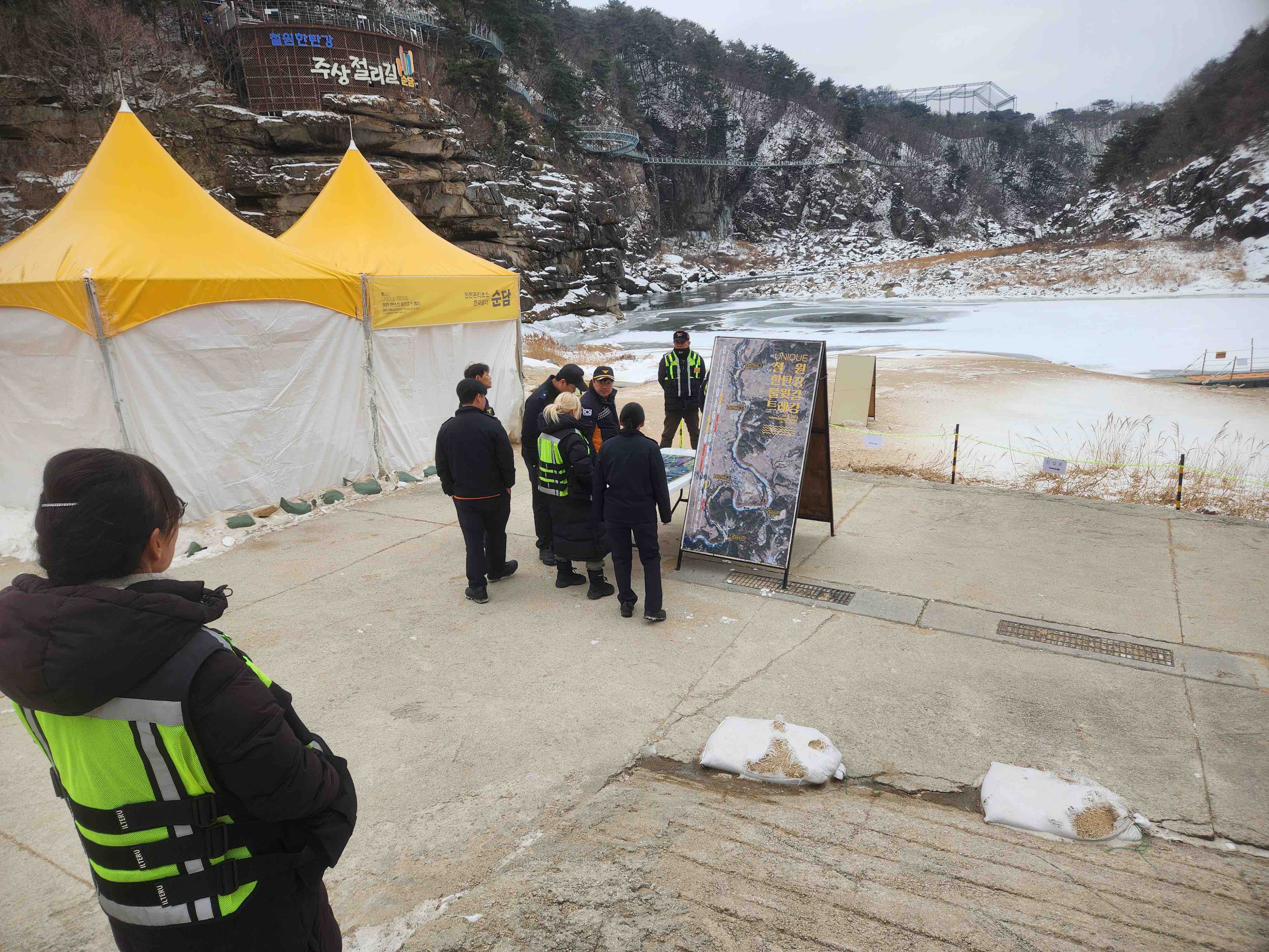 철원소방서(서장 최임수)는 15일 한탄강 얼음트레킹 코스를 대상으로 재난 발생 시 신속한 현장 대응을 위한 ‘우회진입로 확보 훈련’을 실시했다고 밝혔다.