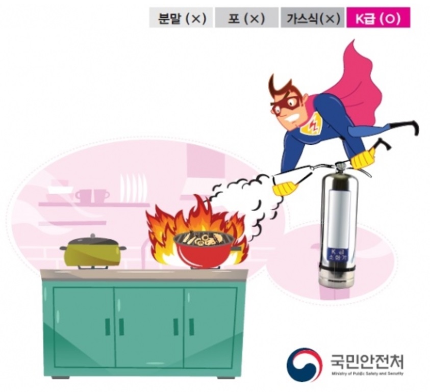 음식점 등 주방에는 주방용 K급 소화기 비치 필수