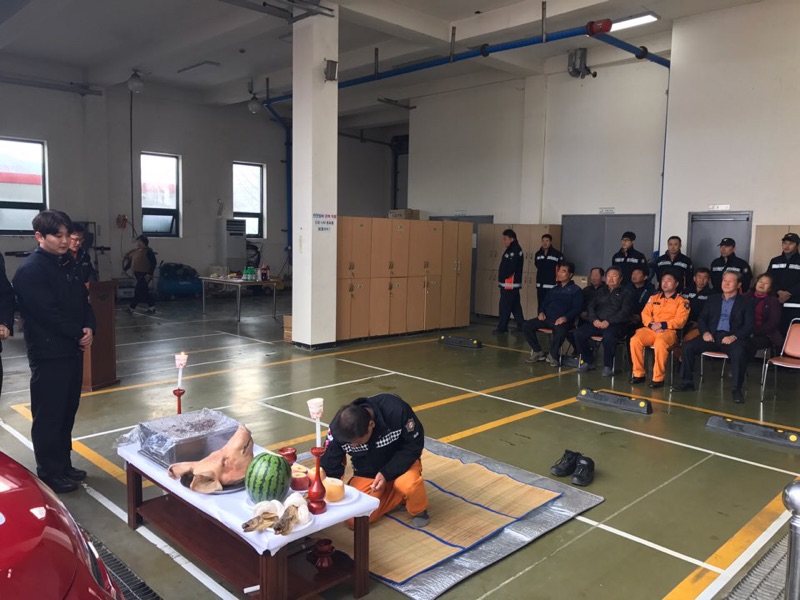 김화119안전센터 차고에서 신규 배치된 소방펌프차량의 무사고 기원 및 안전운행을 위한 ‘안전기원제’ 행사를 가졌습니다 ^^