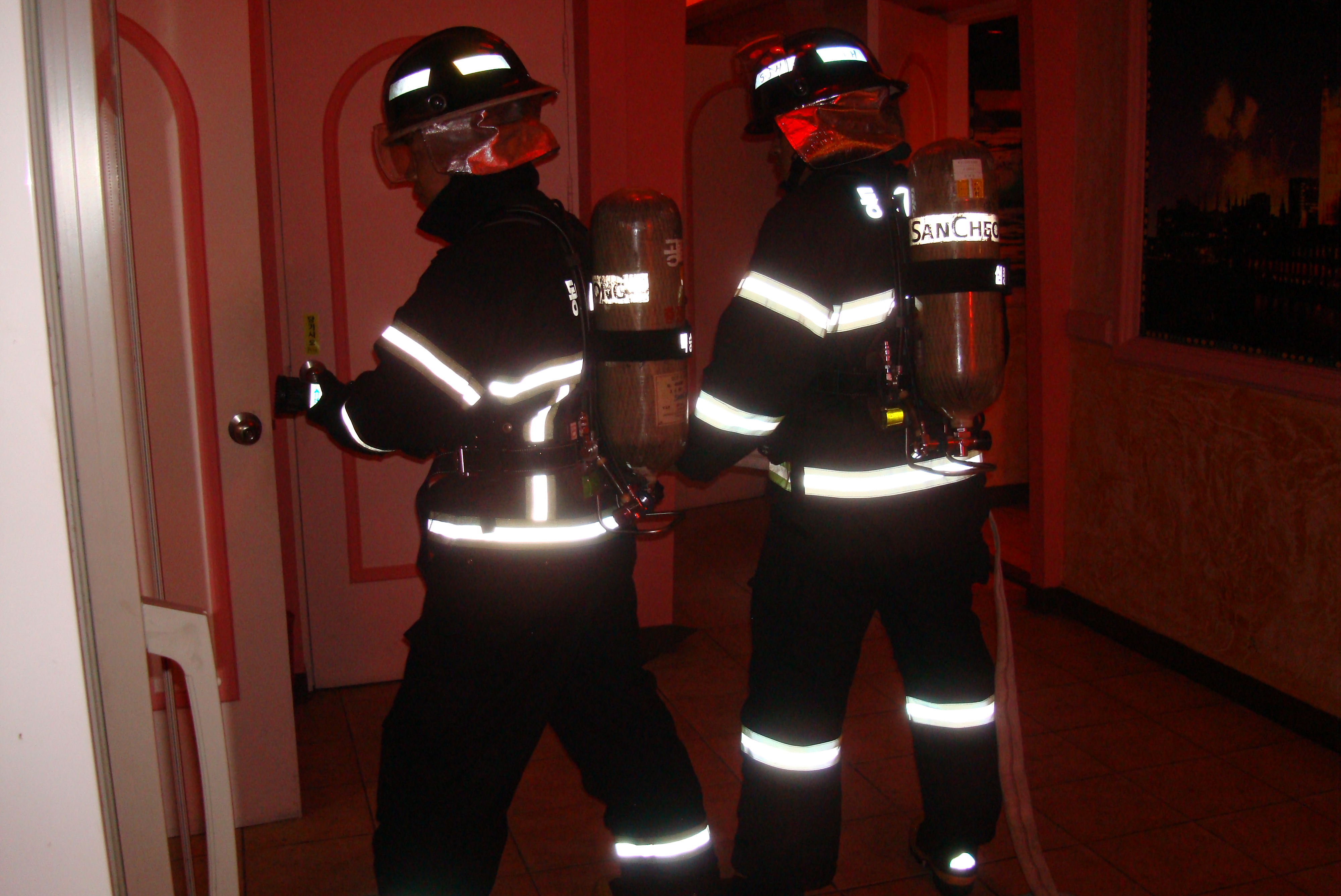 경인년 새해를 맞아 북삼119안전센터(팀장 김동기)는 2010. 1. 08(금) 15:00 ~ 15:30 효가동에 위치한 다중이용업소 무릉노래공원에 대해 현장출동 적응훈련을 실시하였습니다. 이날 훈련은 사전에 도상훈련을 통한 사전 임무를 충분히 숙지 후 현장 훈련에 임하여 출동로 파악 및 차량부서의 위치선정, 건축물 내부 현황 및 소방시설 확인하였으며 관계자에게 소화기 사용요령 교육을 실시하였습니다.