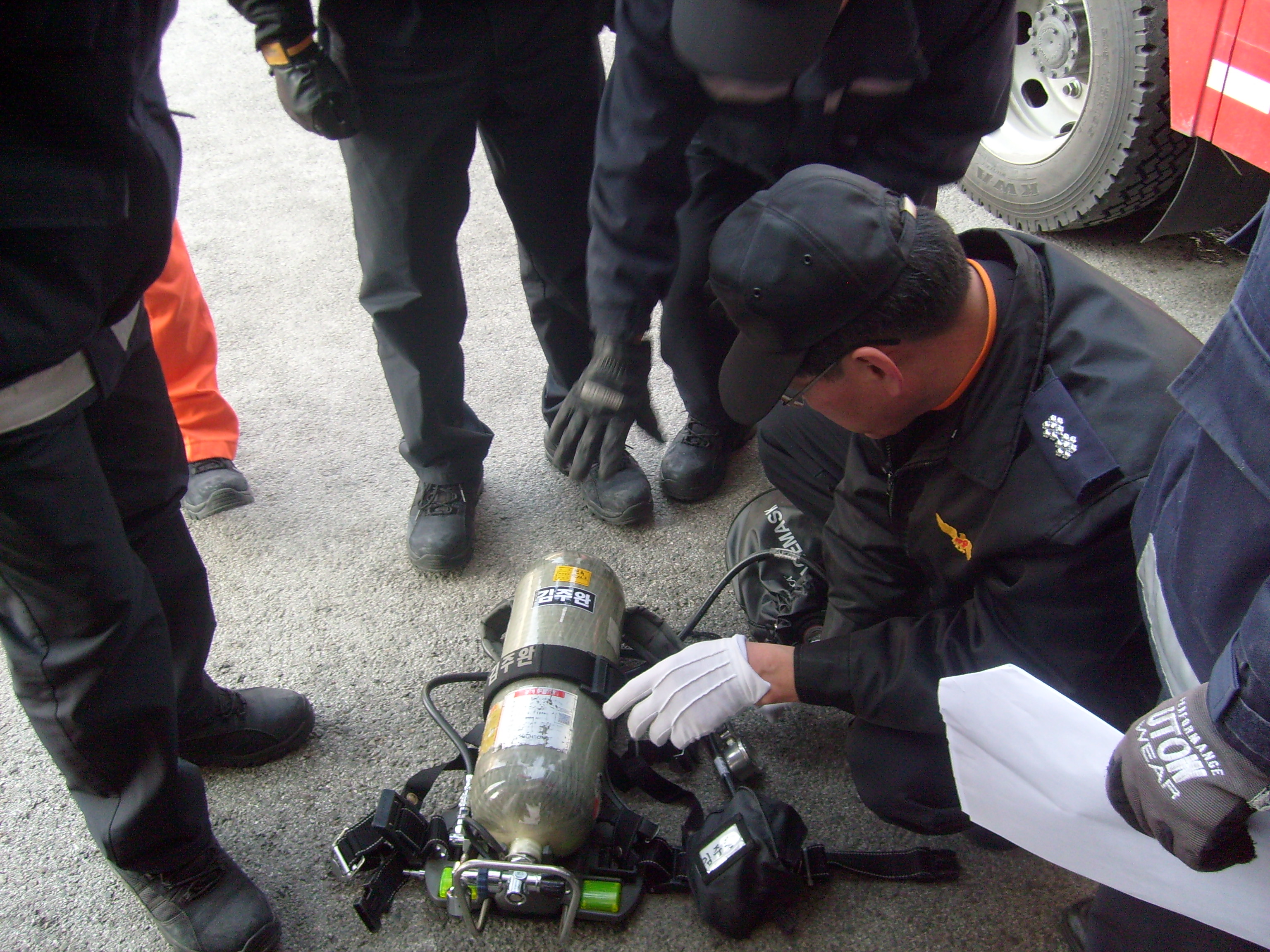 공기 호흡기 및 배연차 조작 훈련