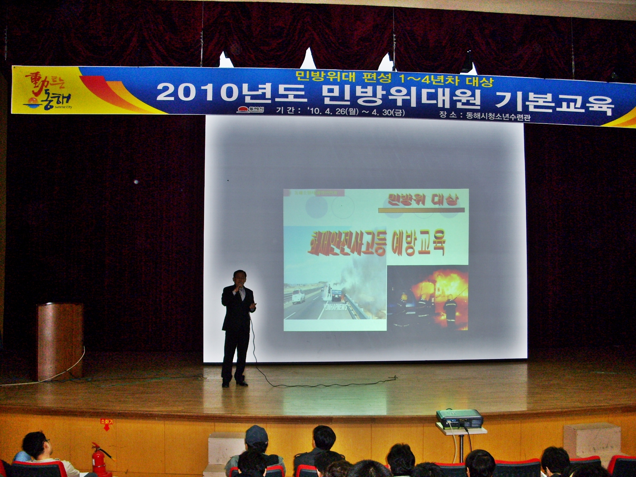 동해소방서(서장 이흥교)는 26일부터 5일간 동해시 민방위대원 1,720명을 대상으로 화재로 인한 인명피해 10%저감을 목표로 하는 ‘화재와의 전쟁’ 선포와 관련하여 화재예방 안전교육 및 심폐소생술 응급처치교육 등 소방안전교육을 실시한다.