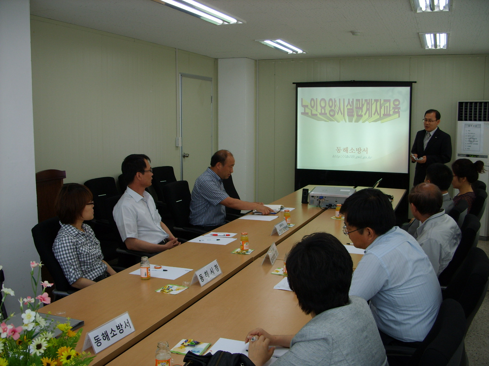 동해소방서(서장 김남숙)은 화재와의 전쟁을 선포함으로써 노인요양시설의 인명피해 제로화를 위하여 8일 오전 11시 국민건강보험공단 동해지사 회의실에서 시청관계자 및 노인복지요양사 등 12명이 참석한 가운데 노인요양시설 종사자를 대상으로 간담회를 가졌다.