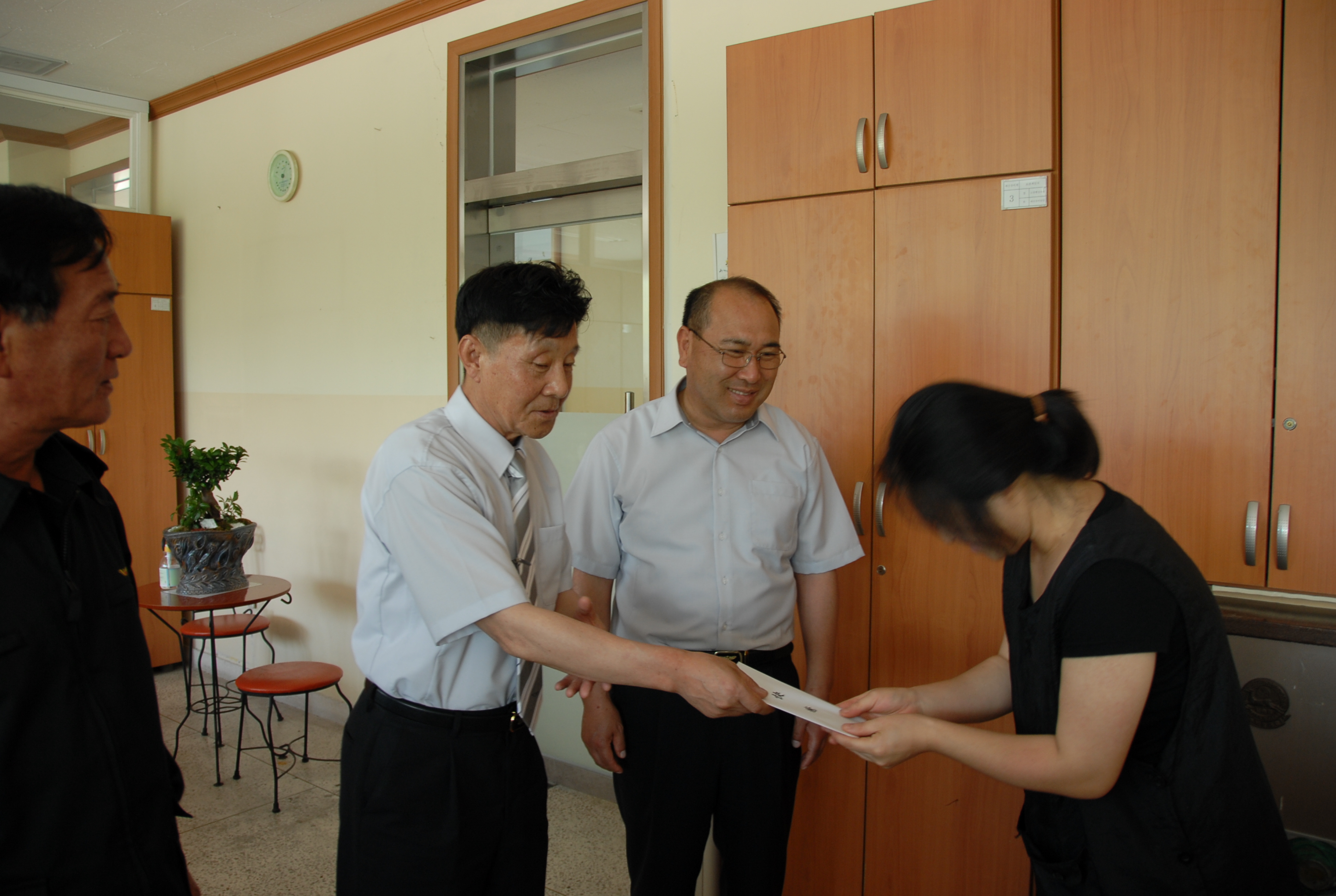 동해소방서(서장 김남숙)는 6.21(월) 11:00 소방행정과 사무실에서 본서 식당을 운영중인 김구일씨에게 사랑나눔회 성금을 전달하였습니다. 하루빨리 완쾌되시기를 바라며, 도와주신 직원들께 진심으로 감사드립니다.