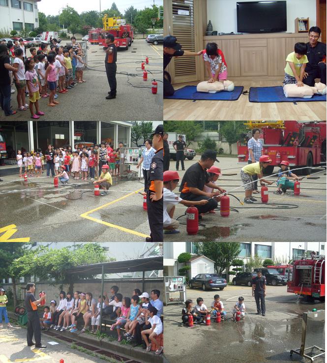 이번달 4일과 18일 해맑은지역아동센터 외 3개대상 80여명의 어린이가 소방서를 견학하여, 심폐소생술 실습, 물소화기 체험, 소방장비 작동시범 관람 등을 실시하였다.
