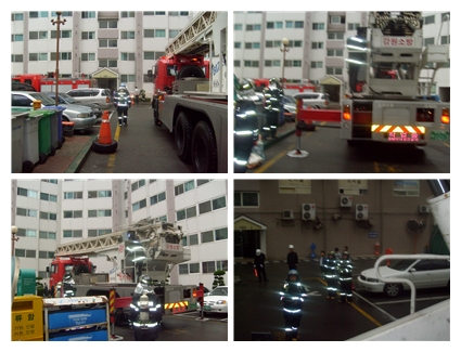 천곡 119안전센터 센터장 소방경 유승용은 펌프,구급,고가차 이용 고층건물 화재 대비 현지적응훈련을 실시하였다.
