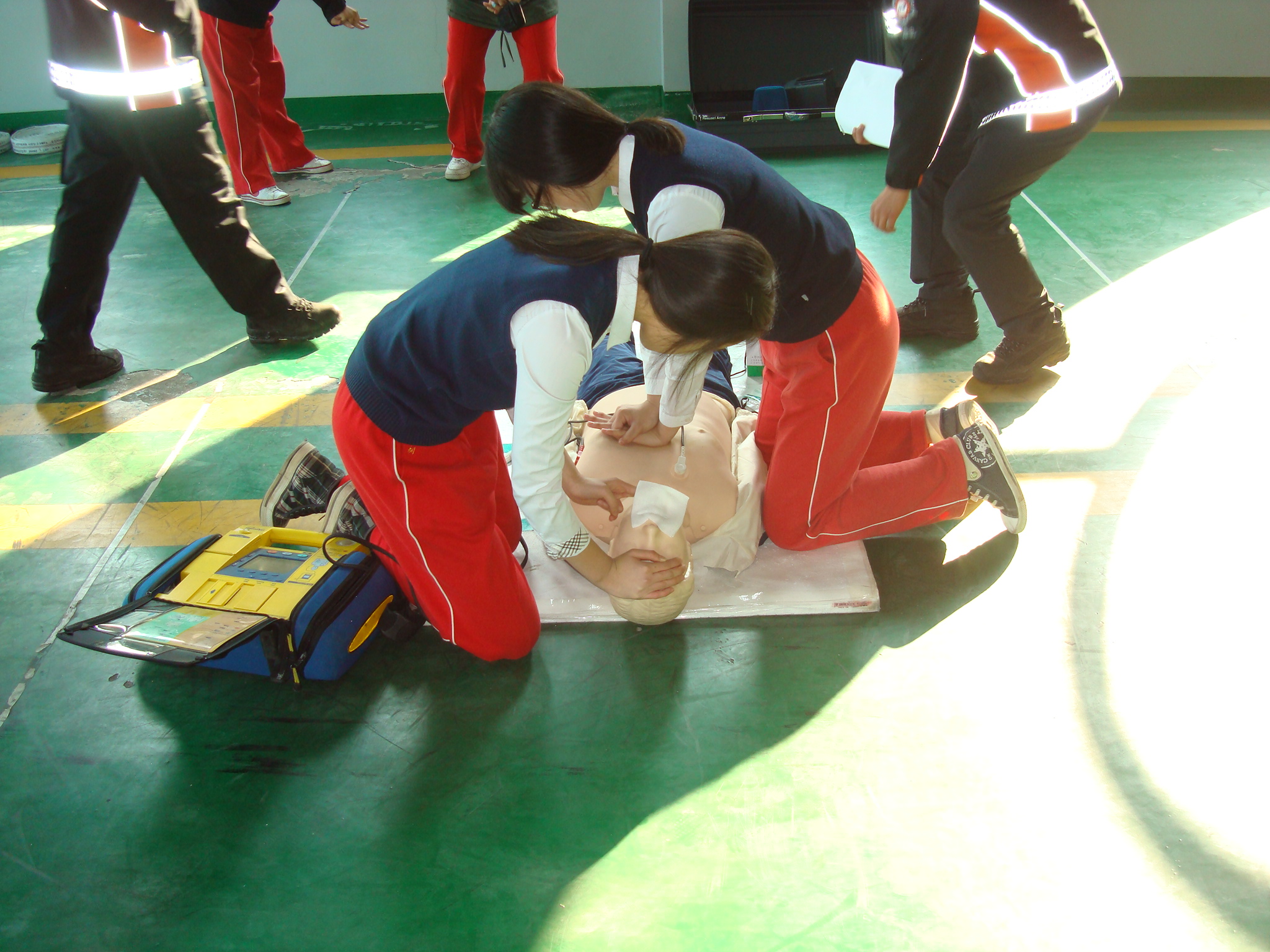 북삼119안전센터(센터장: 전찬호)는 2010년 11월17일 전국 고등학생 CPR경연대회 참가자인 광희고등학교 학생 4명을 대상으로 CPR 교육 및 자동제세동기 사용법을 교육하였습니다.