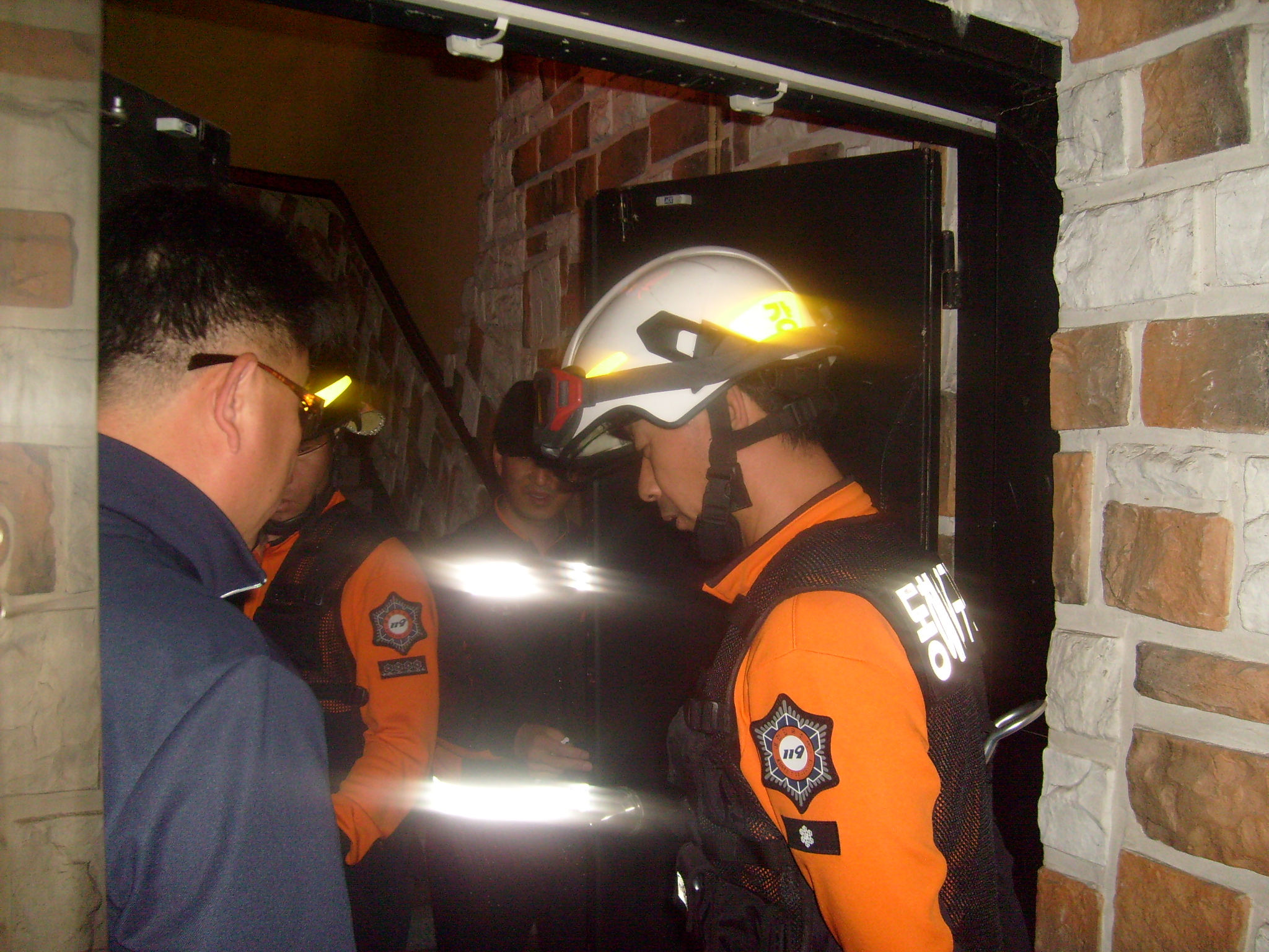 차량부서위치 및 비상구를 파악,주변 건축물의 위치를 확인하여 신속하게 화재진압 및 인명구조를 할수 있는 훈련이라 하겠다. 비상구의 개폐여부 파악과 업주에 대한 소화기 사용법 교육도 실시하였다.
