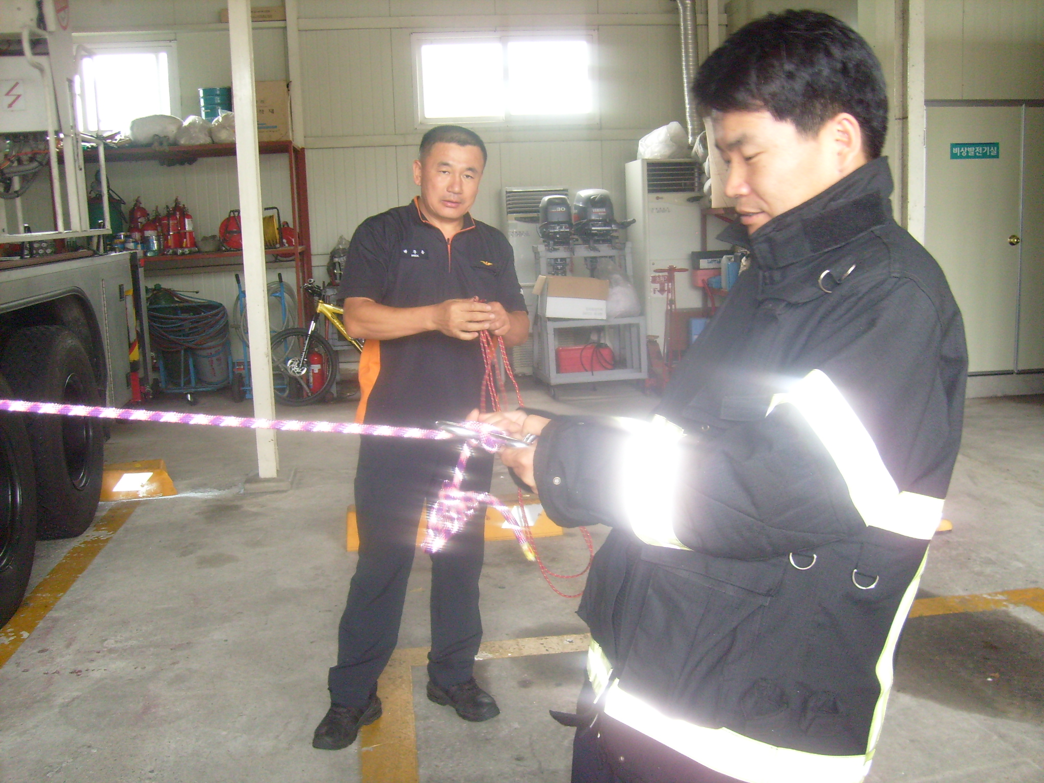로프와 8자하강기를 이용한 탈출법 및 각종 로프매듭법을 교육받음으로써 현장에서 안전하고 신속하게 대처할 수 있는 능력을 향상시키는 계기가 되었다.