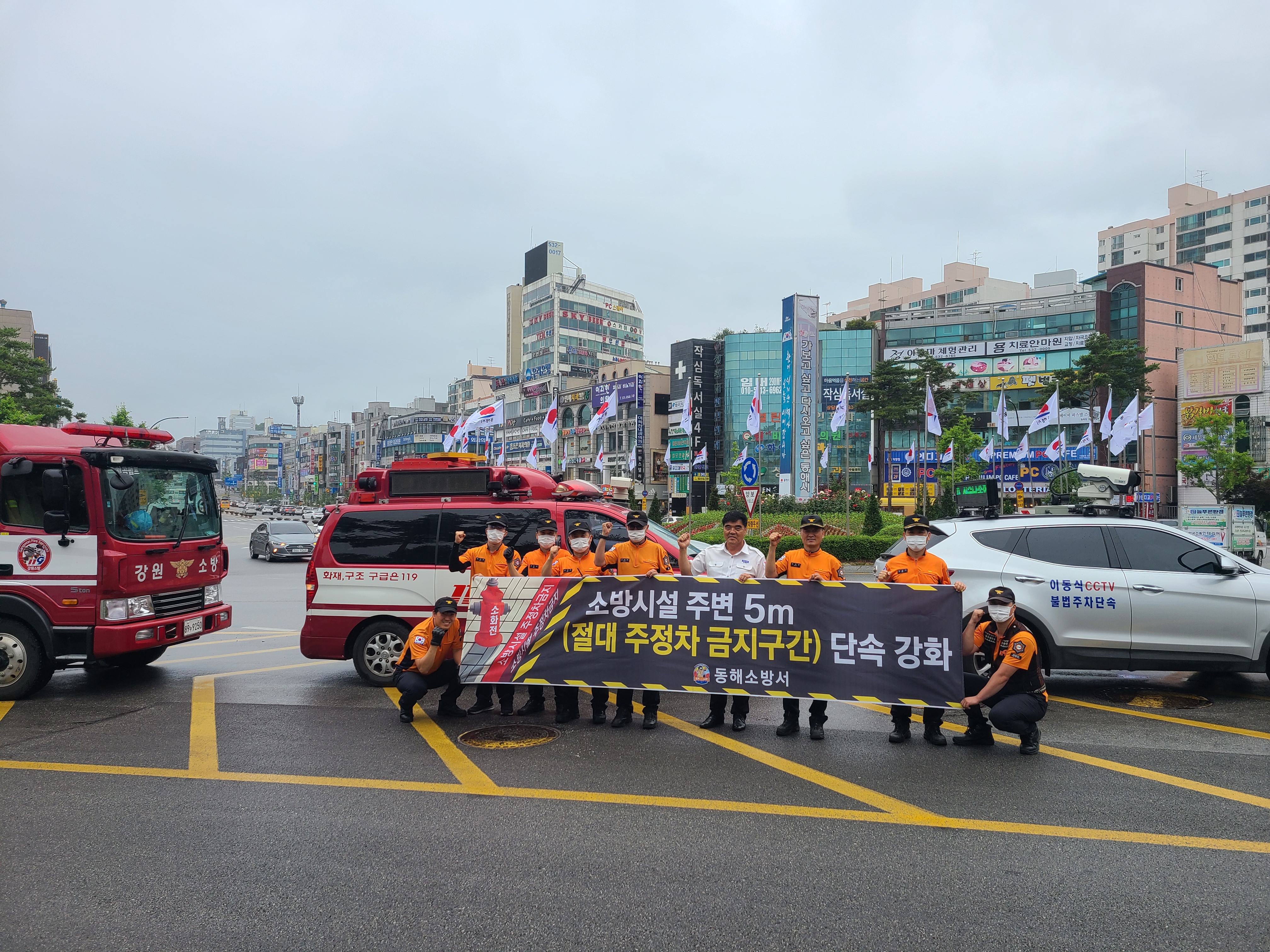 동해소방서(서장 김정희)는 지난 19일 소화시설 주변 고질적인 안전무시 관행을 근절하고 신속한 현장대응 여건을 조성하고자 주·정차 금지구간 집중단속의 날을 운영했다고 밝혔다.