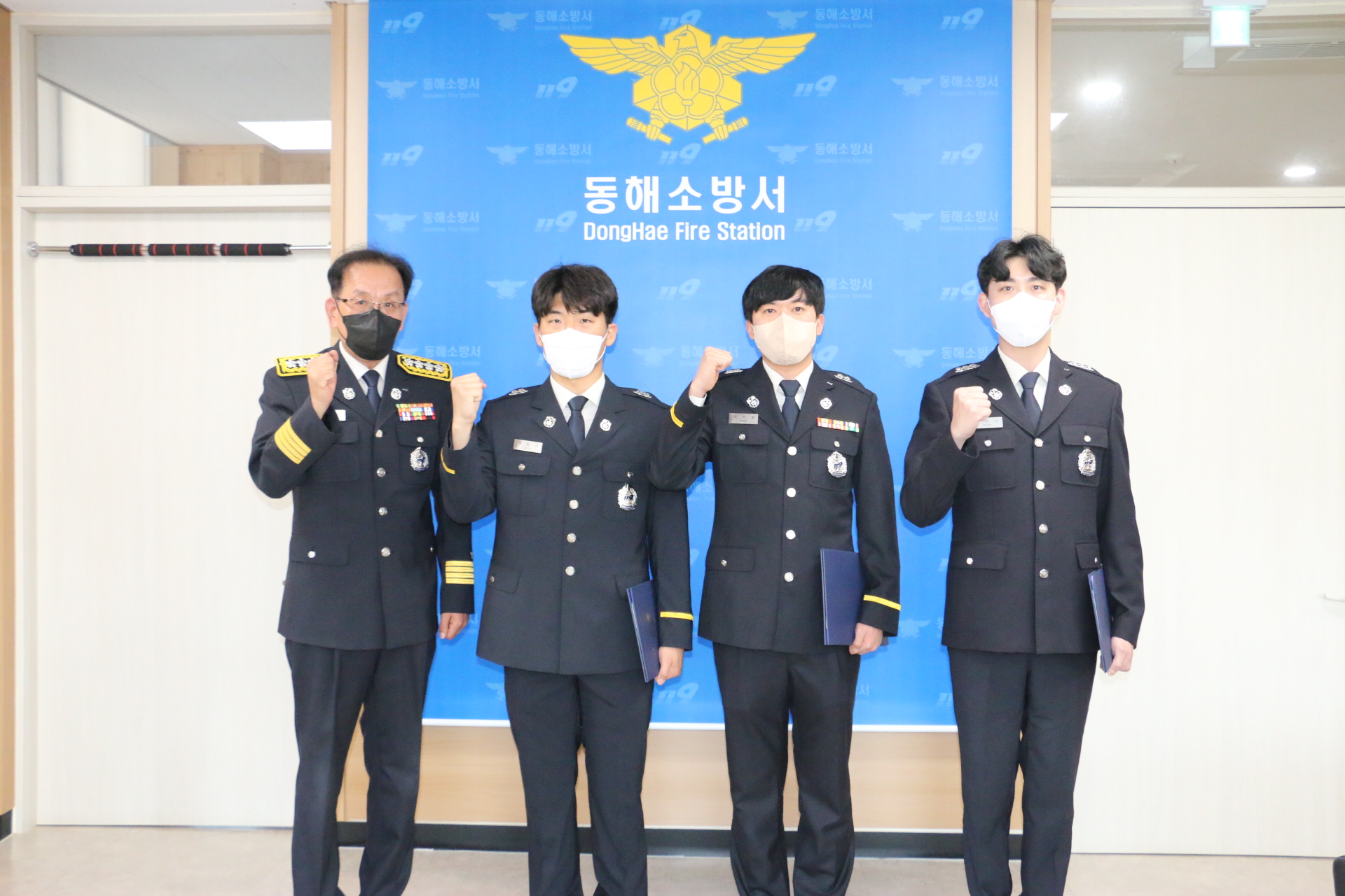 동해소방서(서장 이용길)는 5월 11일 서장실에서 전입자 소방교 박현수(북삼), 소방사 박아람(북평) 및 서내 전보 소방사 전엄표(서내전보, 북삼)에 대한 임용식을 가졌다