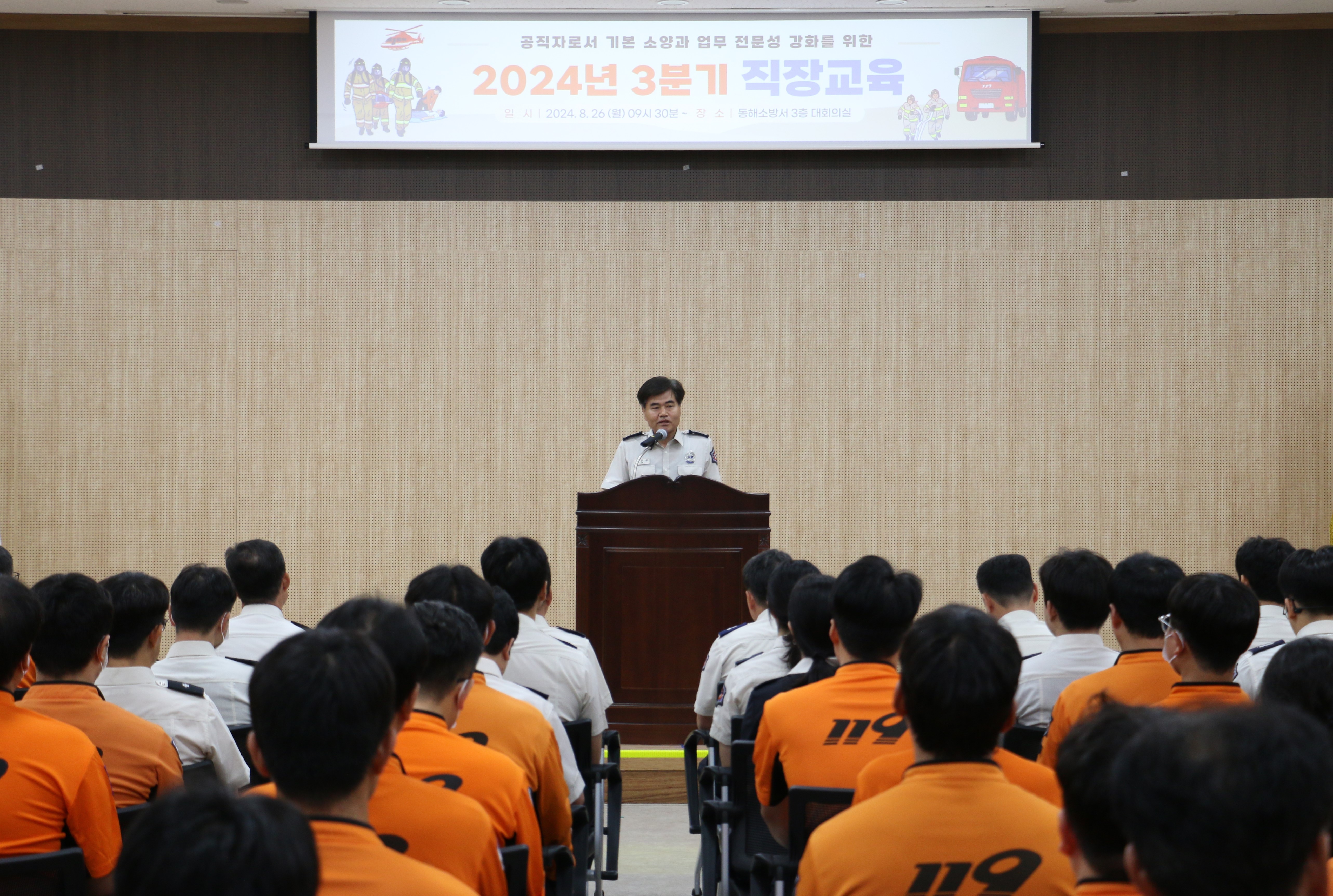 동해소방서(서장 심규삼)는 26일 3층 대회의실에서 2024년 3분기 직장교육을 실시했다고 밝혔다.