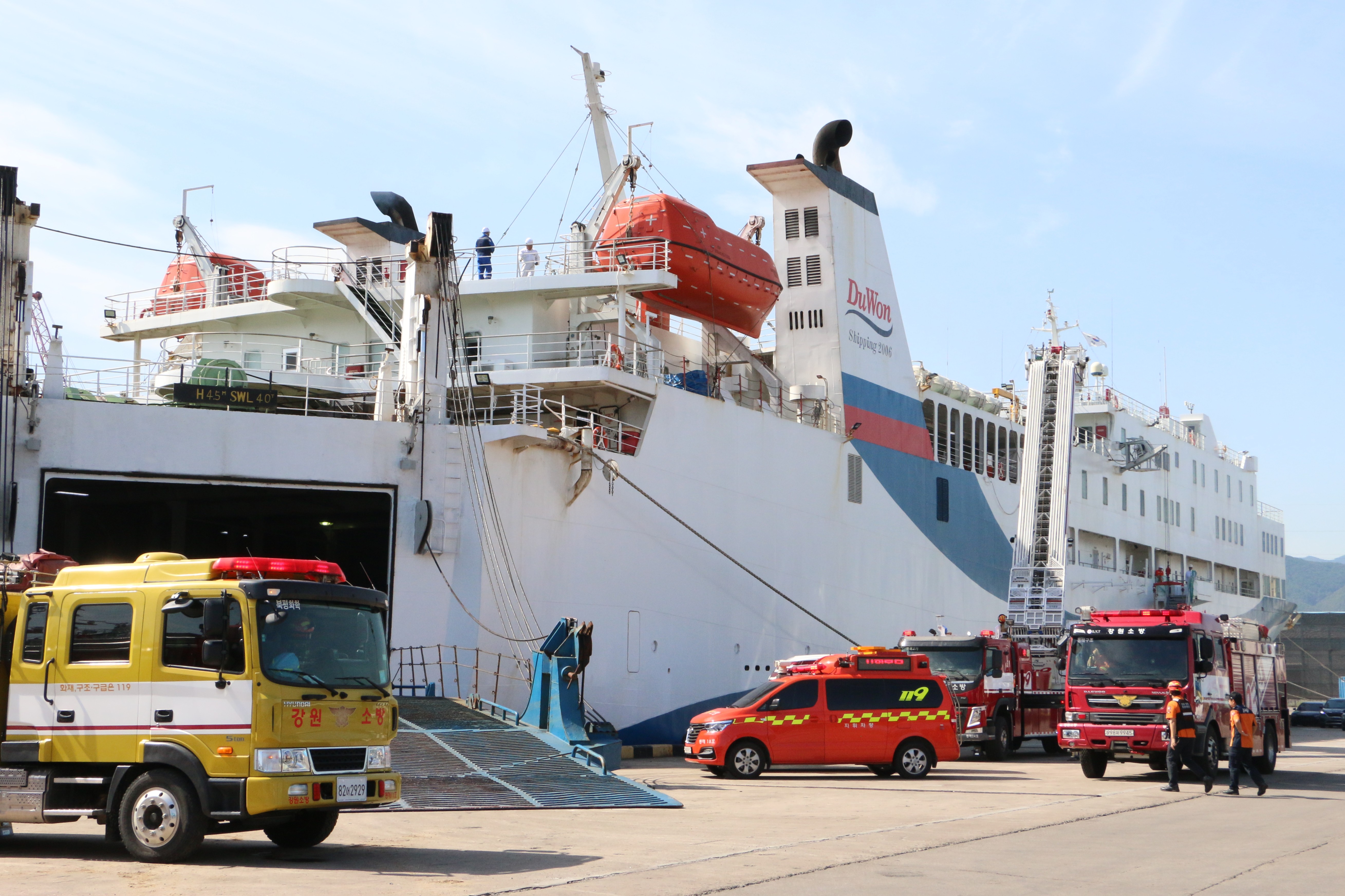 동해소방서(서장 강윤혁)는 15일 동해항에 정박한 국제 여객선 이스턴드림호에서 유관기관 합동 소방훈련을 실시했다. 훈련은 동해지방해양수산청 주관으로 진행됐으며, 동해해양경찰서 등 유관기관이 함께 참여했다.