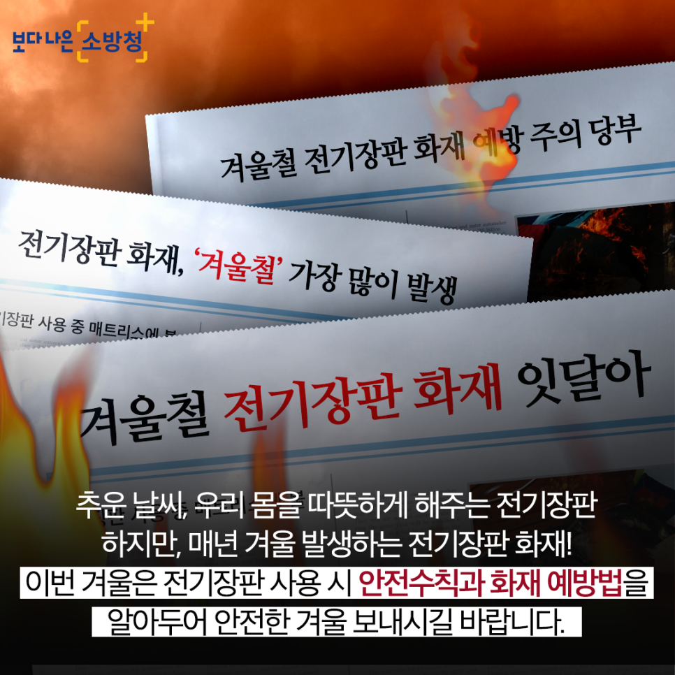 추운 날씨, 우리 몸을 따뜻하게 해주는 전기장판! 하지만, 매년 겨울 발생하는 전기장판 화재!