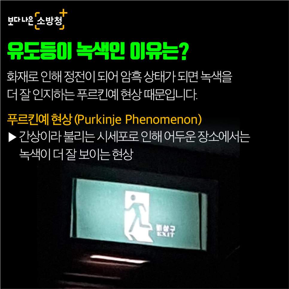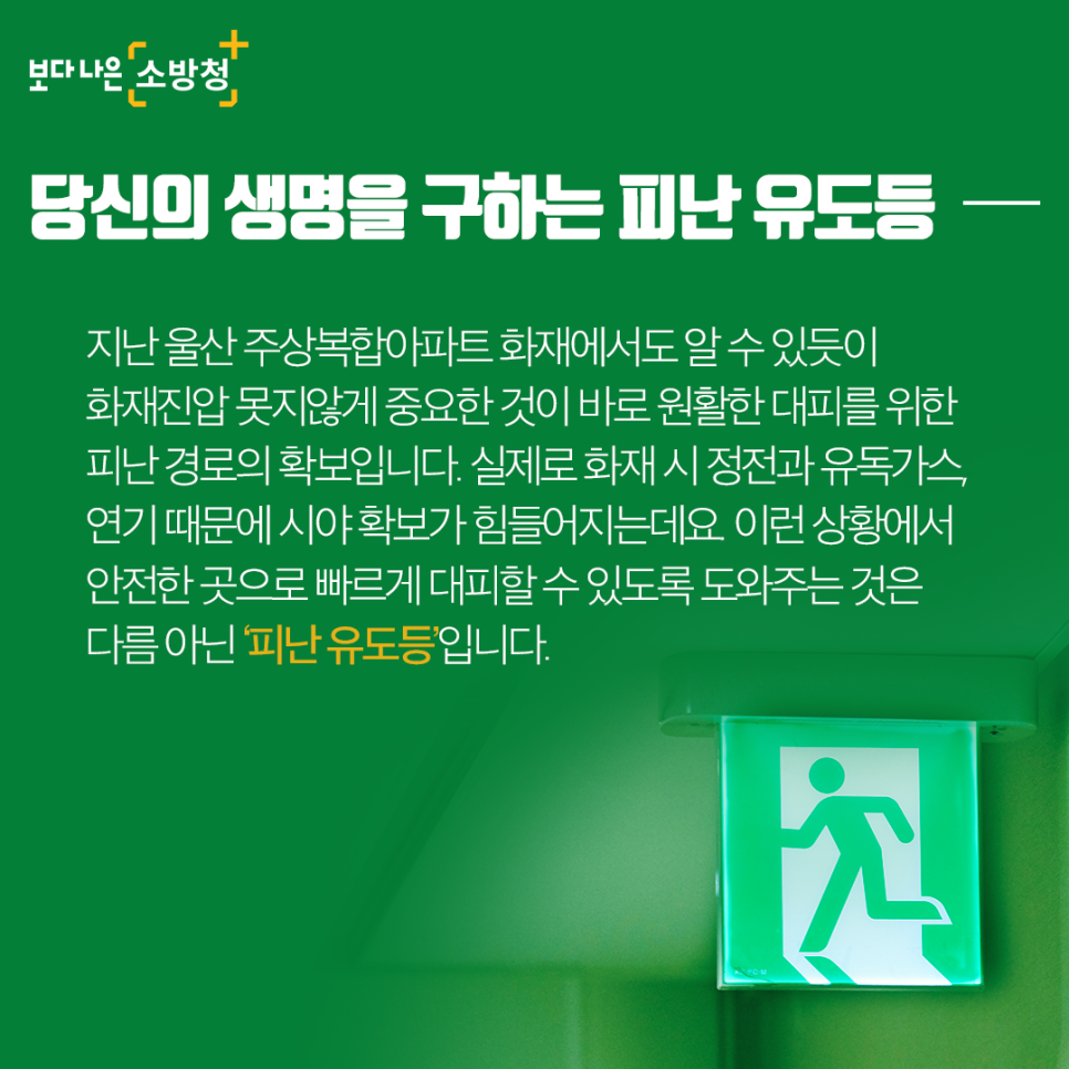 어디가요? 여기에요! 당신의 생명을 구하는 피난유도등! 관심을 가져주세요!