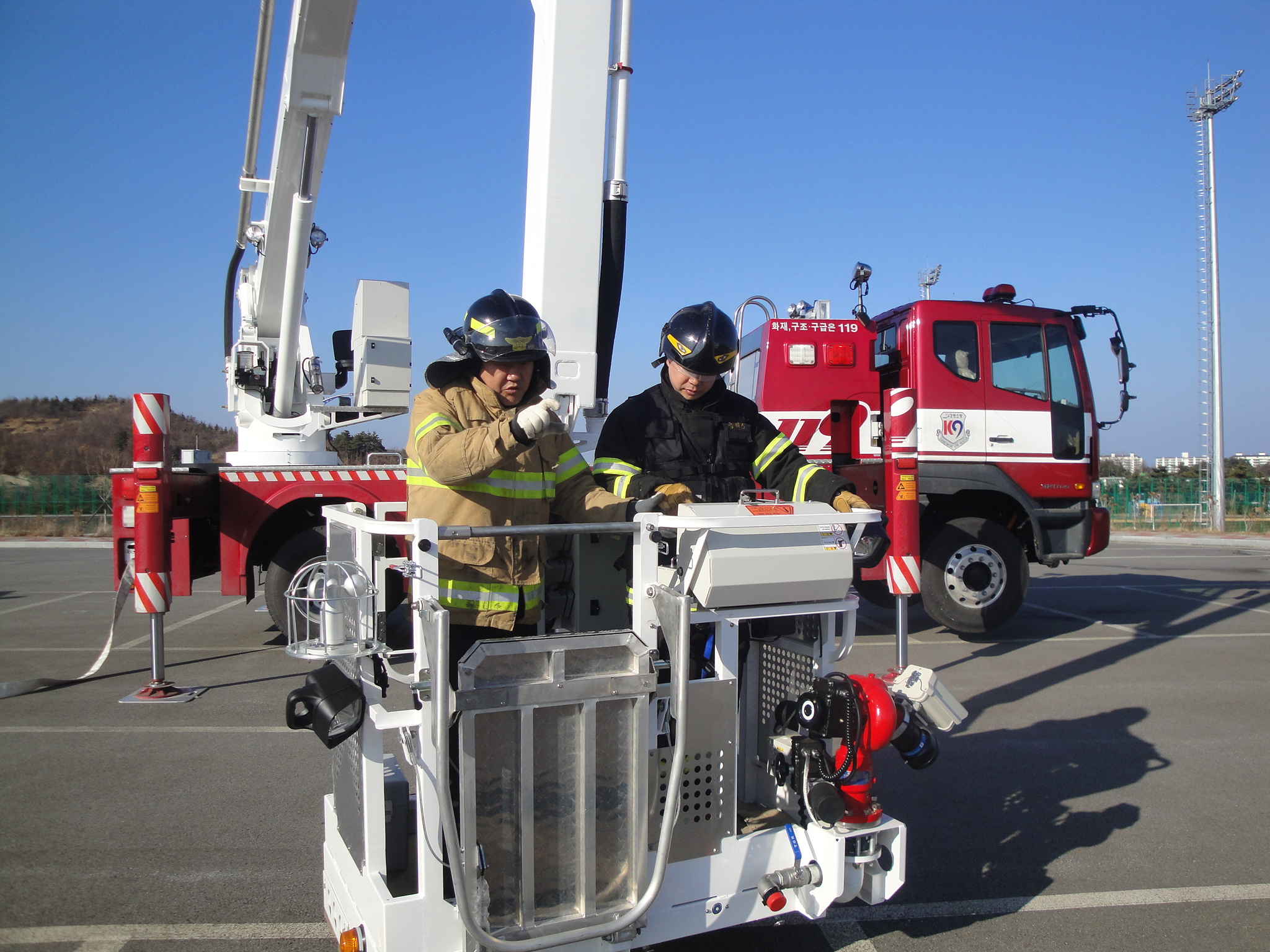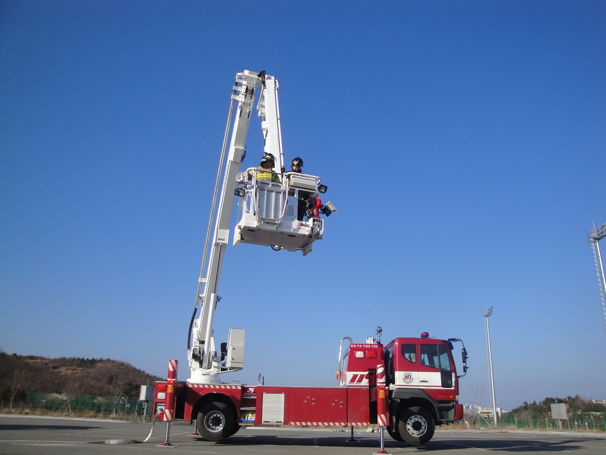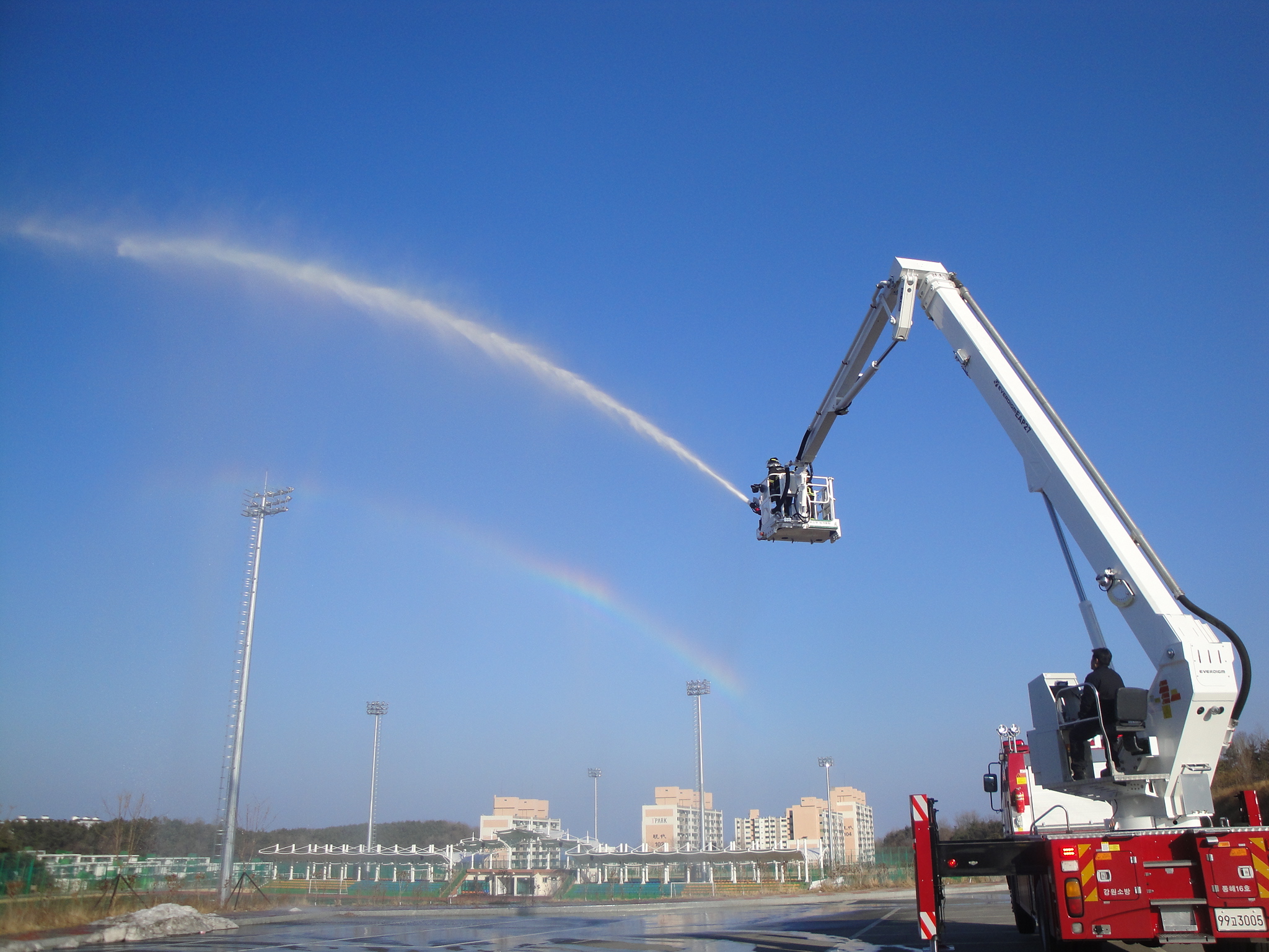 에버다임 굴절탑 소방차의 장비조작훈련 및 시연회를 실시하였습니다.