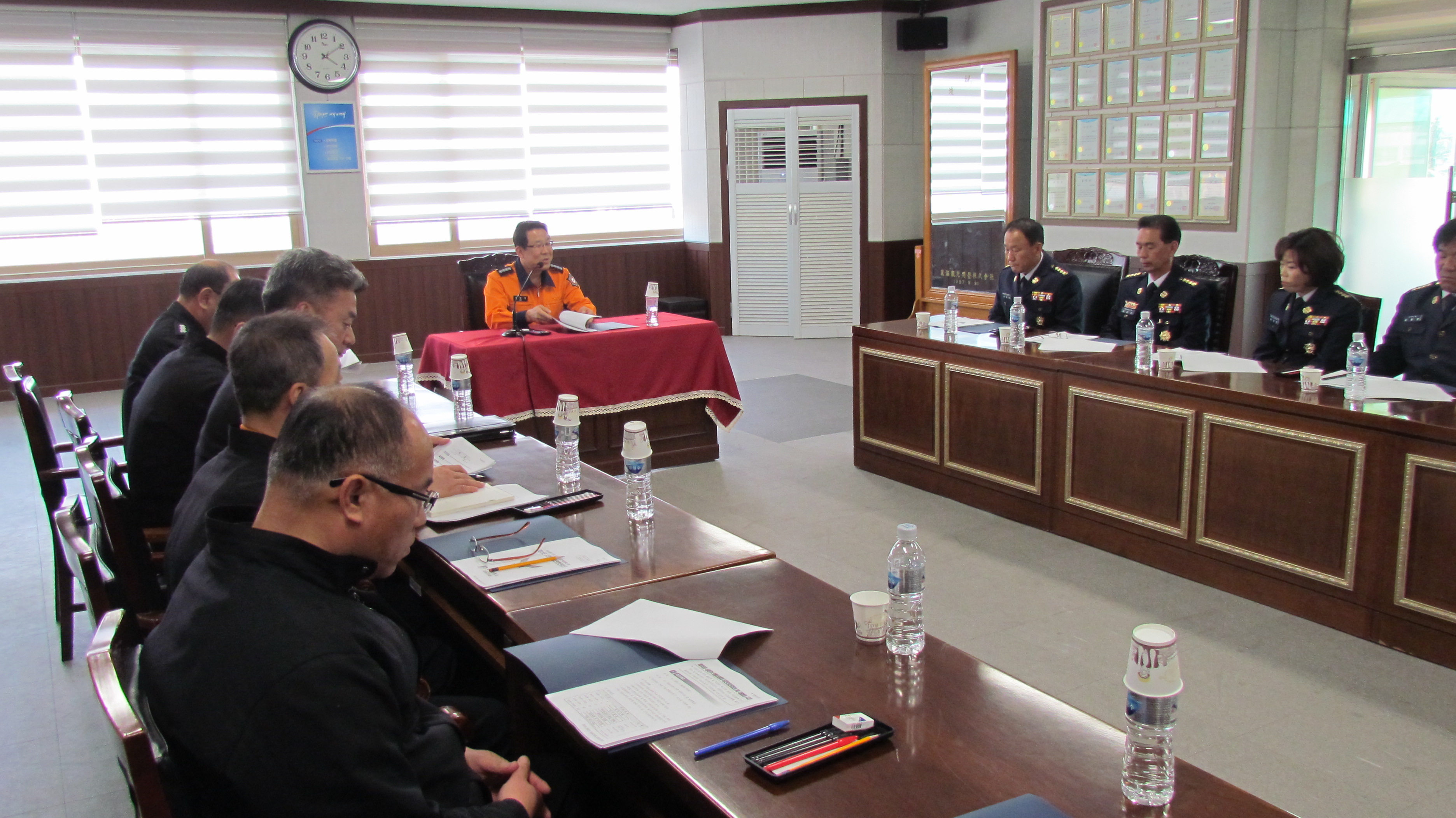동해소방서(서장 주항중)는 24일(화) 16시 소방서 2층 대회의실에서 관내 의용소방대 대장, 부대장을 비롯하여 소방서 관계자등 30여명이 참석한 가운데‘2015년 상반기 의용소방대 간담회’를 개최했다