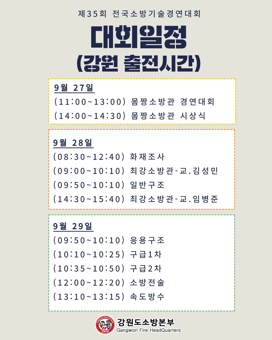 제35회 전국소방기술경연대회 빛나는 강원소방 화재진압분야 대표단을 소개합니다.