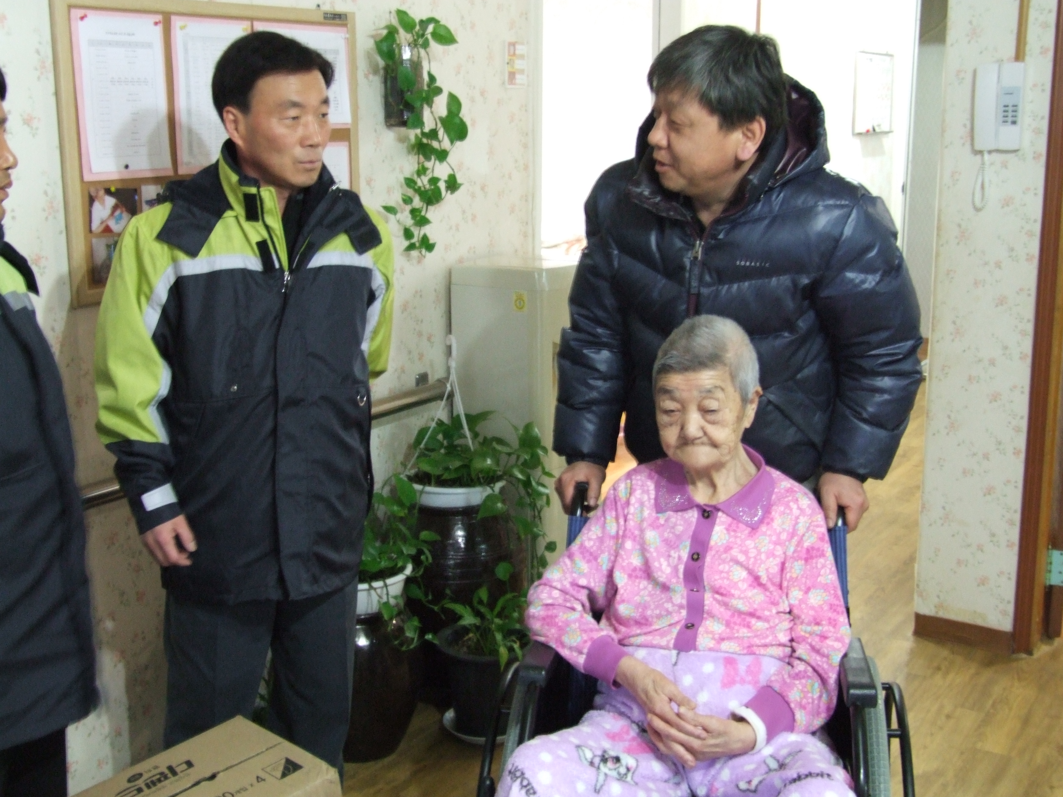 원주소방서(서장 조근희) 소속 문막의용소방대는 2010년 2월 11일(목) 설 연휴를 앞두고 관내 노인요양복지시설(성가정)을 방문하여 나눔의 마음으로 준비한 물품(쌀2포, 떡, 성인용 기저귀 등)을 전달하였습니다. 눈이 많이 내려 길도 미끄럽고 여건이 좋지 않았지만 설연휴 우리 주변의 어려운 이웃에게 눈처럼 하얀 마음을 전할 수 있었던 기분좋은 자리였습니다.