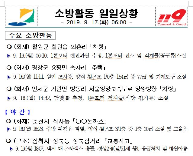 소방활동 일일상황 (9. 17. 화) 06:00