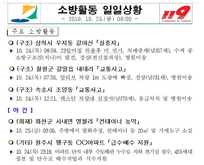 소방활동 일일상황(10.25. 금) 06:00