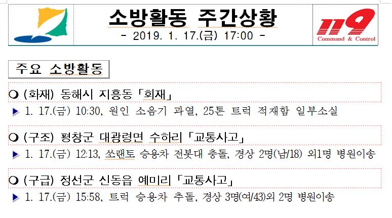 소방활동 주간상황 (1. 17. 금) 17:00