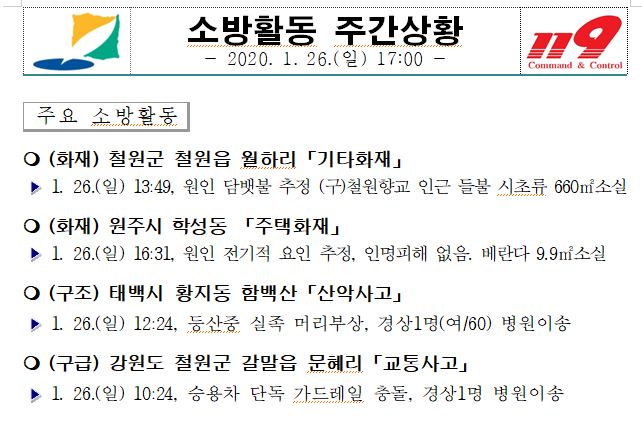 소방활동 주간상황(1. 26. 일) 17:00