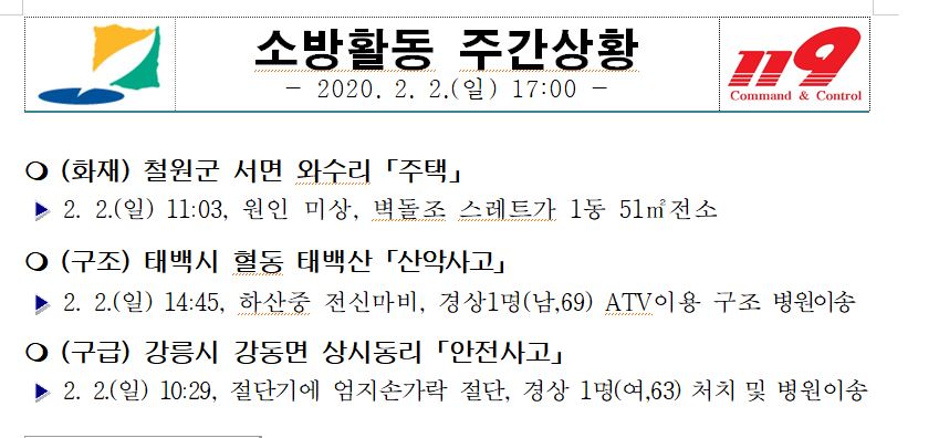 소방활동 주간상황 (2. 2. 일) 17:00