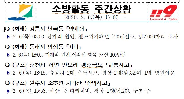 - 소방활동 주간상황 (2. 6. 목) 17:00