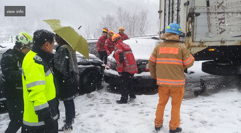 2. 사고내용 : 7중 추돌(승용차3, suv1, 화물3) / 눈길 미끄럼 추정