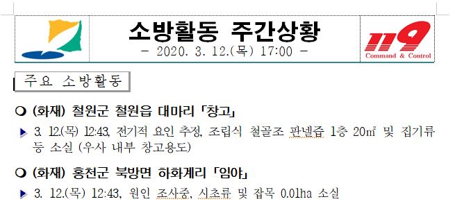 소방활동 주간상황 (3. 12. 목) 17:00