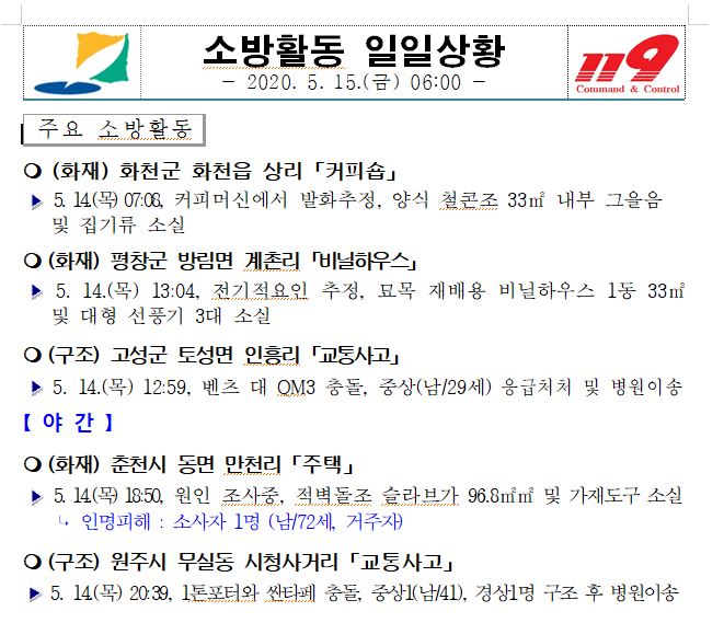 소방활동 일일상황 (5. 15. 금) 06:00