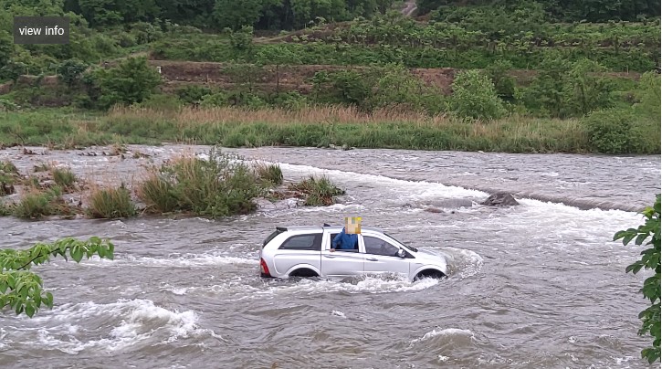 ◆내용 : 오색천 가교를 건너던 차량이 불어난 강물에 가교에서 5m 떠 내려가 강 중간에 고립된 상황.