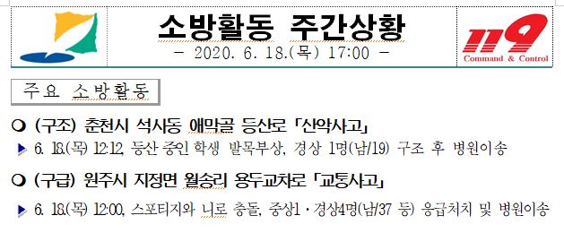 소방활동 주간상황 (6. 18. 목) 17:00