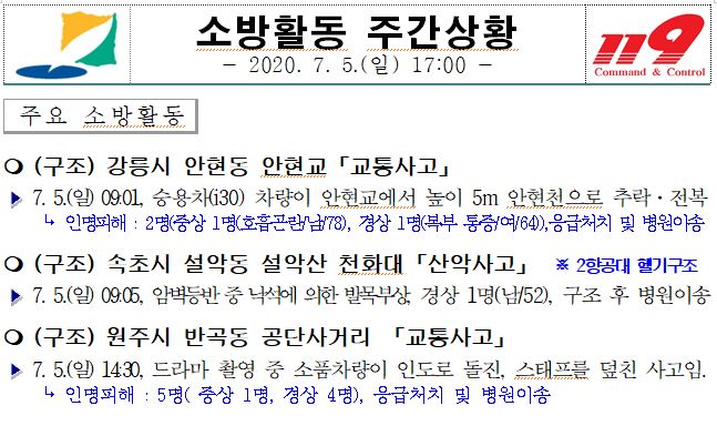 소방활동 주간상황 (7. 5. 일) 17:00