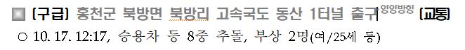 홍천 북방면 서울양양고속도로 동산1터널 출구 교통사고