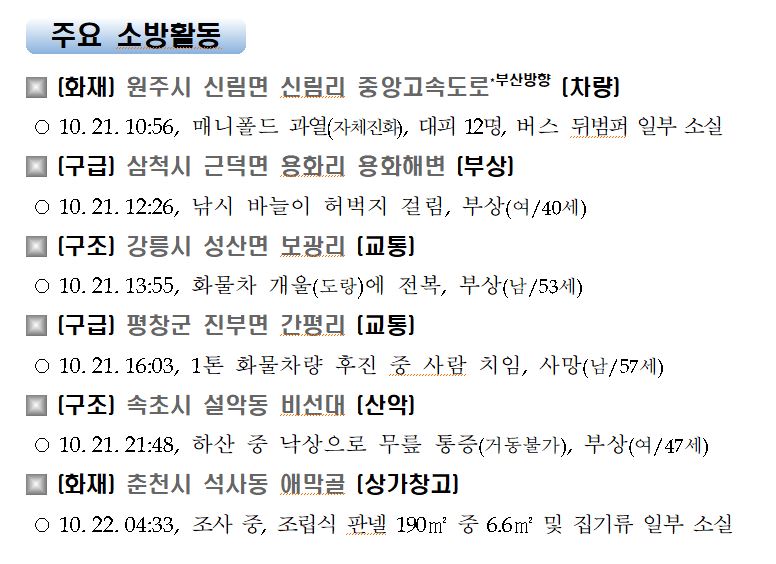 강원도 소방활동 주간상황(10. 22. 목) 17:00