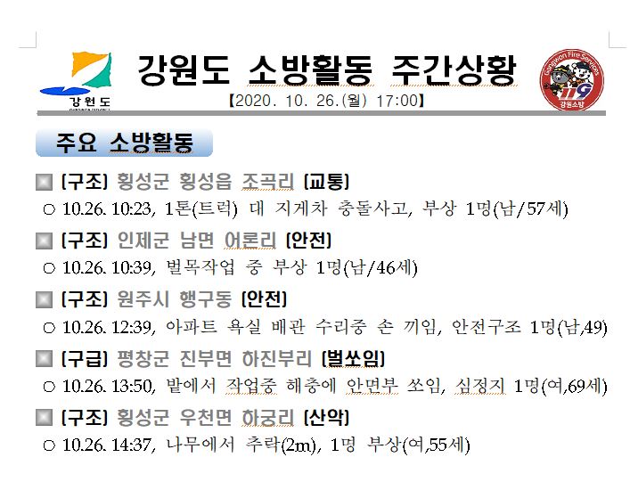 강원도 소방활동 주간상황(10. 26. 월) 17:00