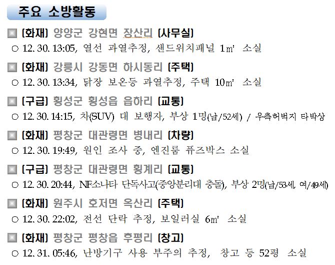 강원도 소방활동 일일상황(12.31.목) 06:00